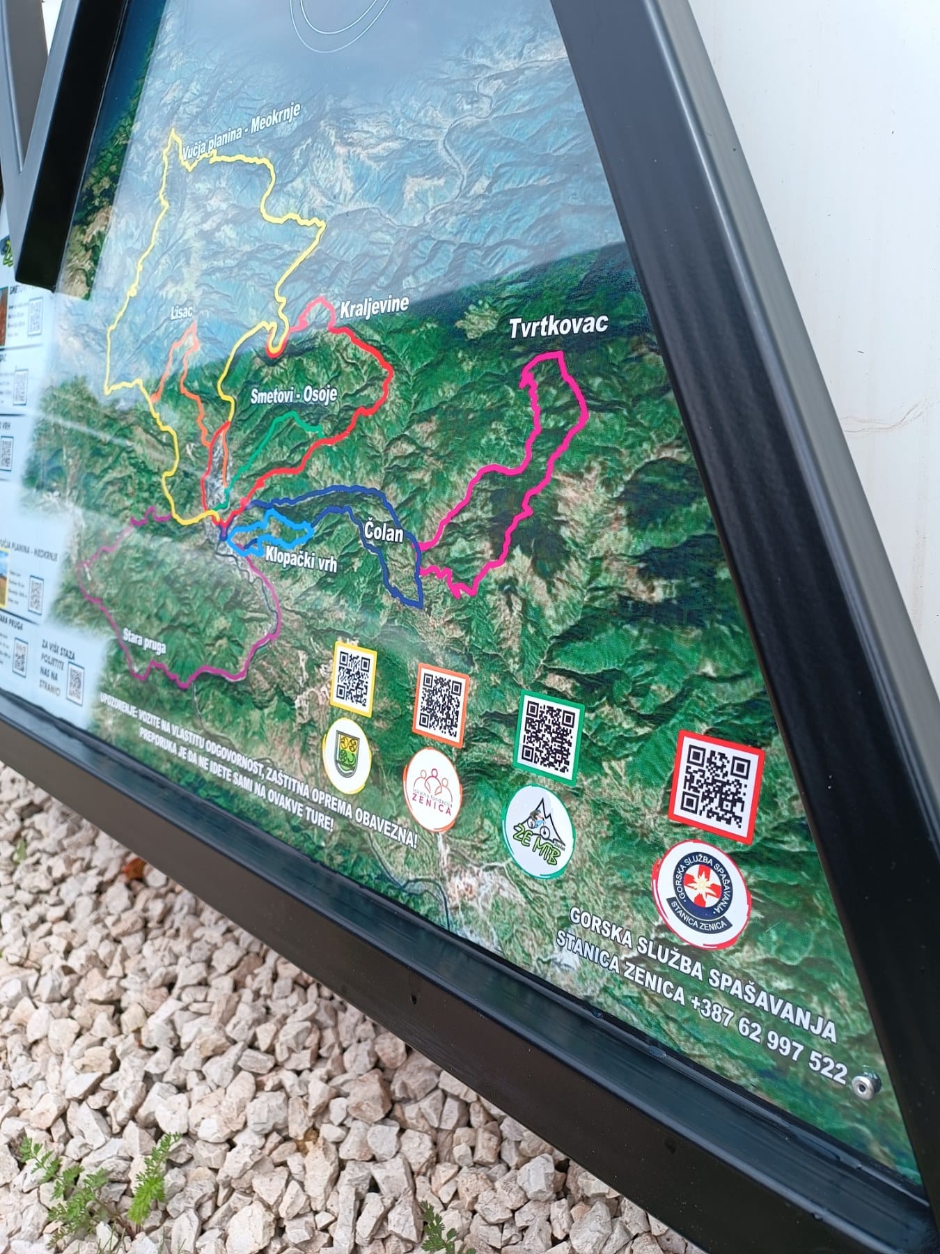 Na tabli je prikazana mapa grada Zenice sa okolinom, a na mapi je izdvojeno 8 različitih tura, rangiranih od lakših do težih.