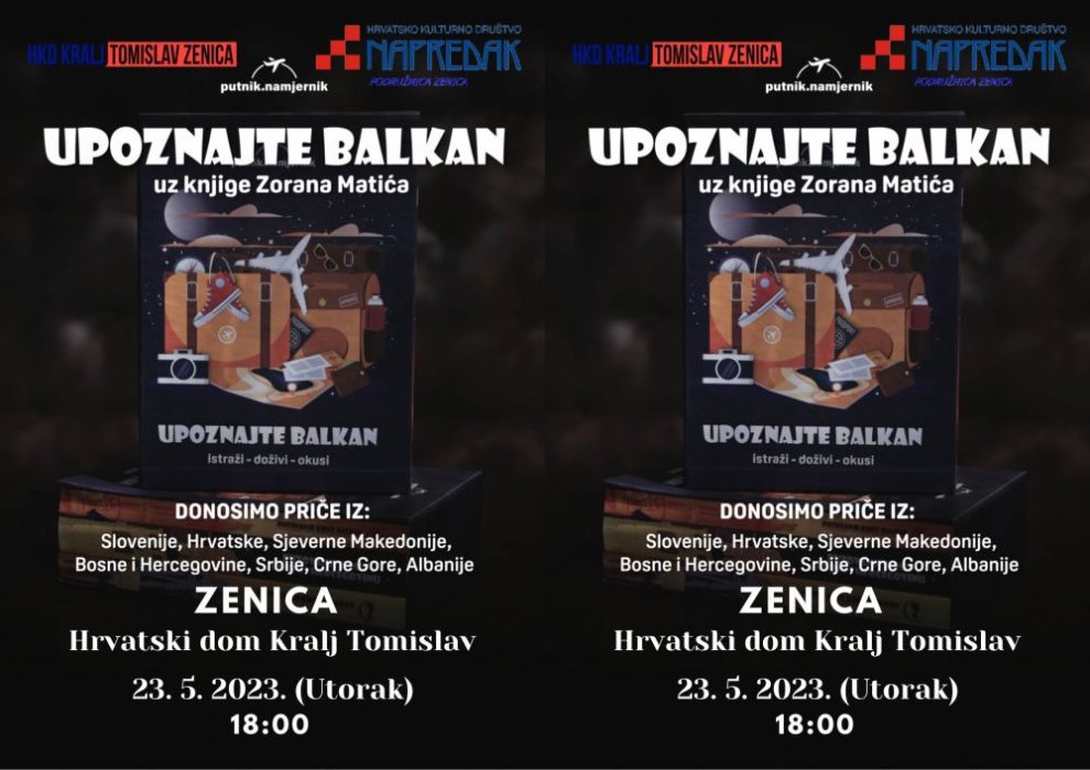 U utorak, 23. maja 2023. godine, u velikoj Sali hrvatskog doma „Kralj Tomislav“ u Zenici sa početkom u 18 sati bit će upriličena promocija knjiga banjalučkog putopisca gospodina Zorana Matića pod nazivom „Upoznajte Balkan“.