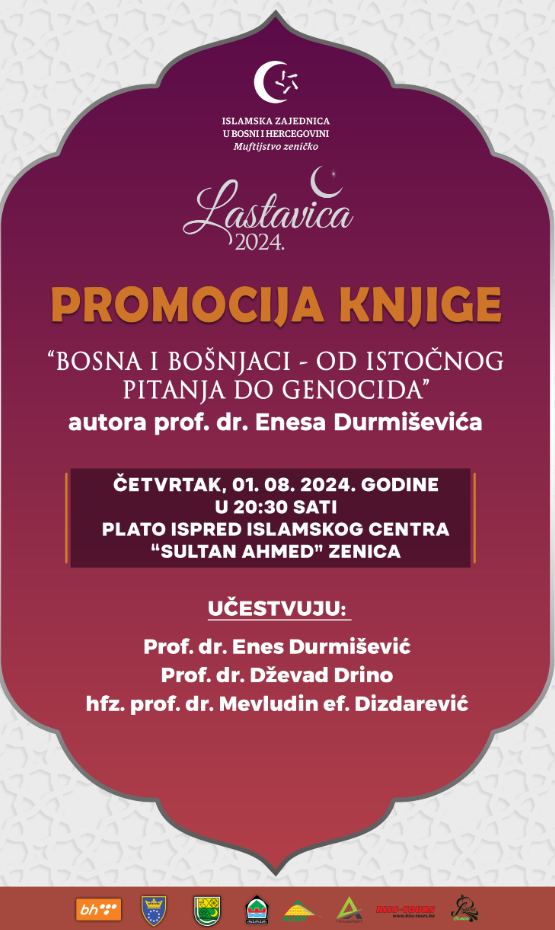 U okviru Vjersko-kulturne manifestacije ”Lastavica 2024.” u četvrtak 01. augusta 2024. godine biće promovirana knjiga “Bosna i Bošnjaci – Od Istočnog pitanja do genocida” autora prof. dr. Enesa Durmiševića.