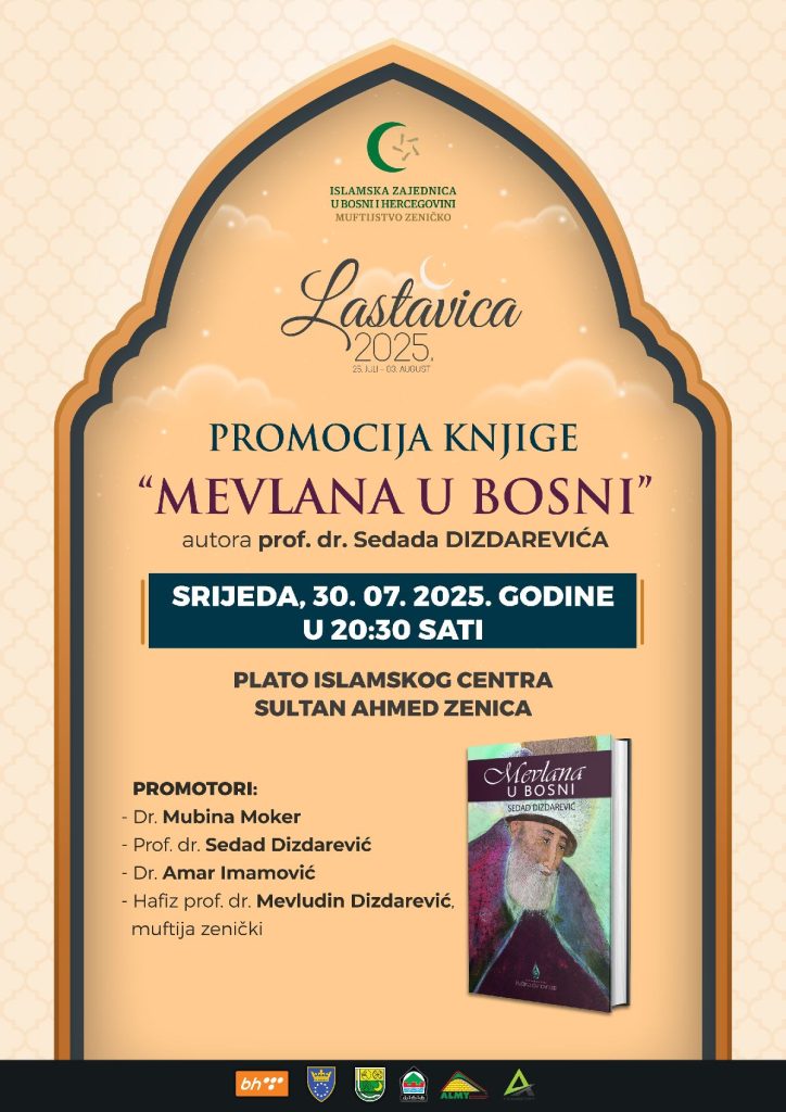 U okviru vjersko-kulturne manifestacije ”Lastavica 2025.” u srijedu 30. jula 2025. godine biće promovirana knjiga “Mevlana u Bosni” autora prof. dr. Sedada Dizdarevića.