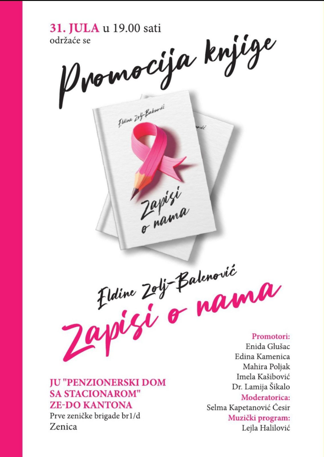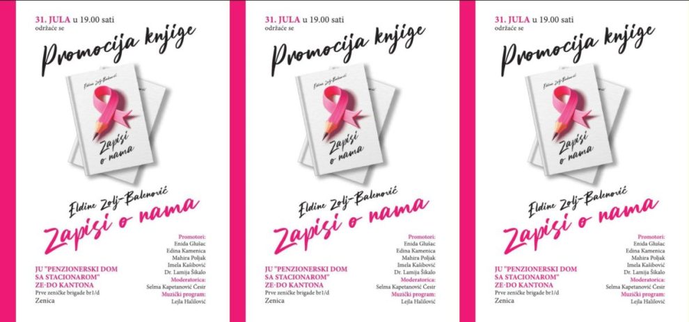U četvrtak, 31. jula u JU “Penzionerski dom sa stacionarom” Ze-do kantona u Zenici će se održati promocija knjige “Zapisi o nama” autorice Eldine Zolj-Balenović.