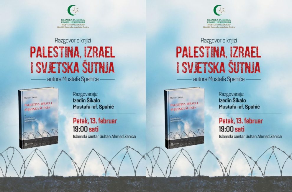 U organizaciji Medžlisa Islamske zajednice Zenica i Muftijstva zeničkog, u petak, 13. februara 2026. godine, u Islamskom centru Sultan Ahmed u Zenici, s početkom u 19.00 sati, bit će upriličen razgovor o knjizi „Palestina, Izrael i svjetska šutnja“ autora Mustafe Spahića.