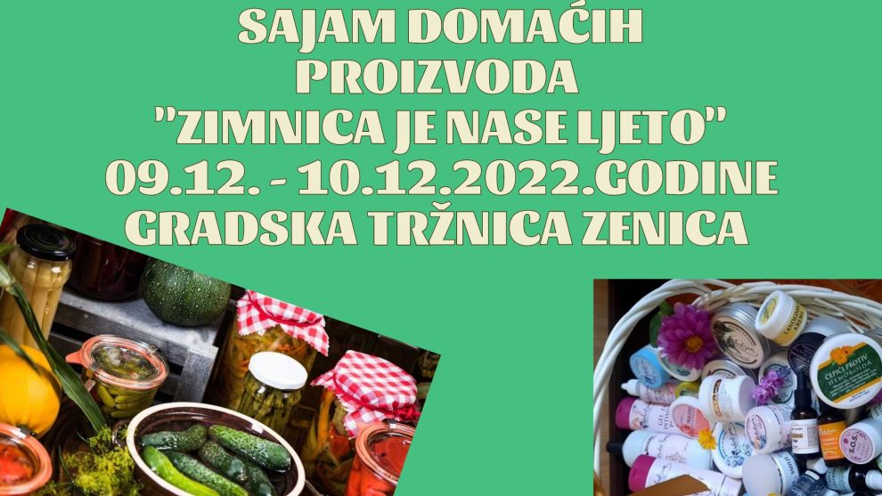 Sajam domaćih proizvoda ” Zimnica je naše ljeto” održat će se 09.12. i 10.12. 2022. godine u Gradskoj tržnici u Zenici od 09-17h.