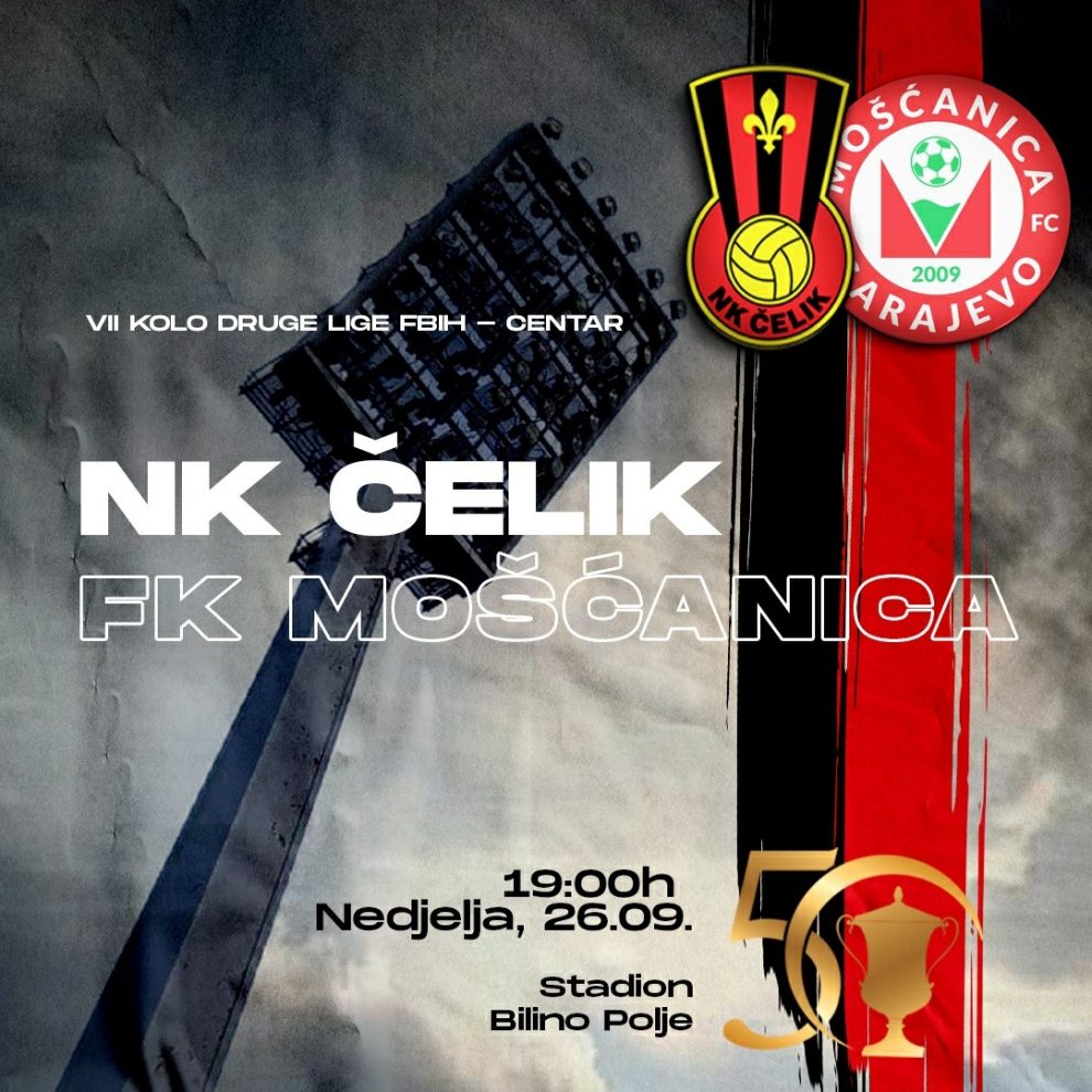 Utakmica NK Čelik – FK Moščanica igra se u nedjelju, 26.9.od 19 sati na stadionu Bilino polje u Zenici pod svjetlošću reflektora.