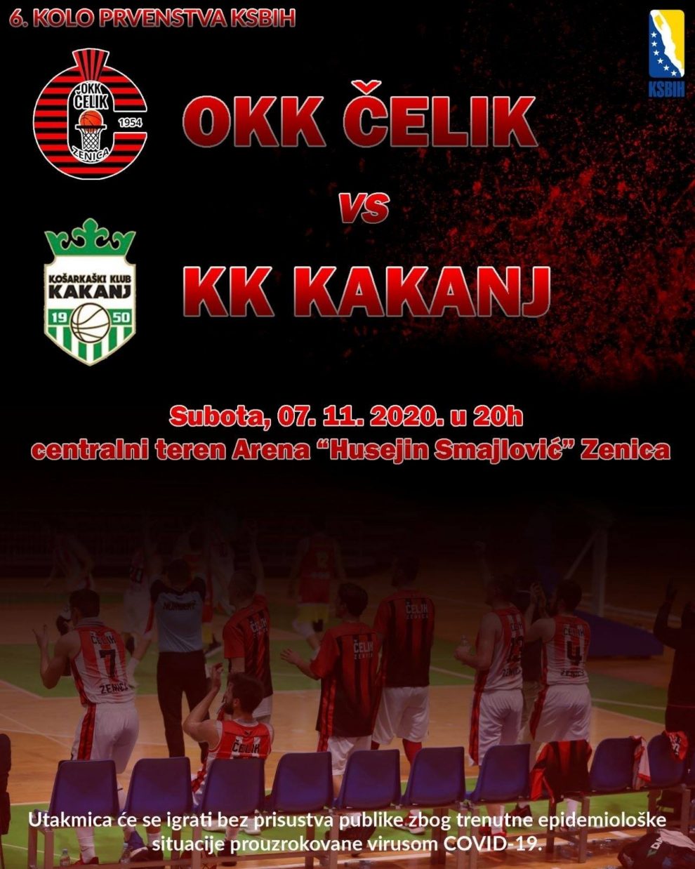 Utakmica OKK Čelik – KK Kakanj će se igrati na centralnom terenu gradske Arene „Husejin Smajlović“ u Zenici, subota u 20 sati, bez prisustva publike.