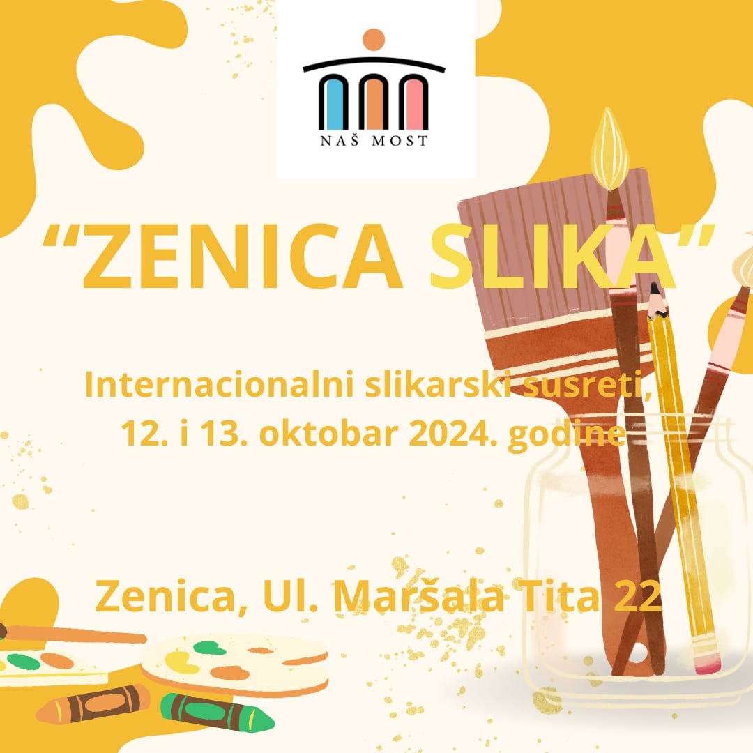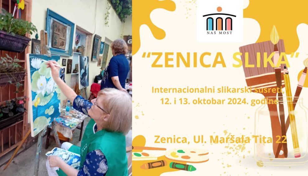 U organizaciji Udruženja Naš Most Zenica, održati će se 12. i 13. oktobra ove godine, jedinstveni slikarski susreti pod nazivom “Zenica slika”, koji će okupiti preko 50 slikara i slikarica iz Bosne i Hercegovine i Hrvatske. Ovaj događaj ima za cilj ne samo promociju umjetnosti, već i humanitarni karakter – sve slike koje nastanu tokom susreta biti će prodate, a prihod će biti usmjeren na pomoć žrtvama nedavnih poplava u BiH.