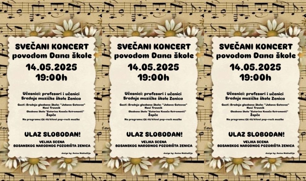 Srednja muzička škola Zenica prigodnim koncertom će proslaviti godišnjicu svog osnivanja, uz bogat repertoar obrada poznatih EX-YU pop-rock hitova.