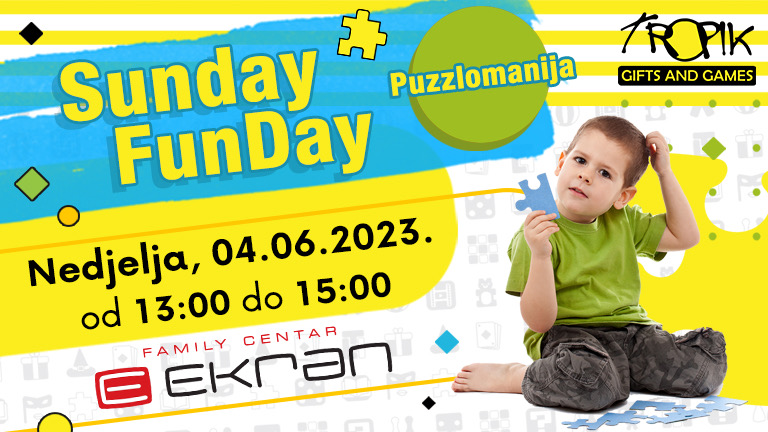 Čekamo vas u nedjelju, 04. juna, u 13:00-15:00h, u Family centru “Ekran” u Zenici, ne propustite “Sunday FunDay”- zabavu za cijelu porodicu!
