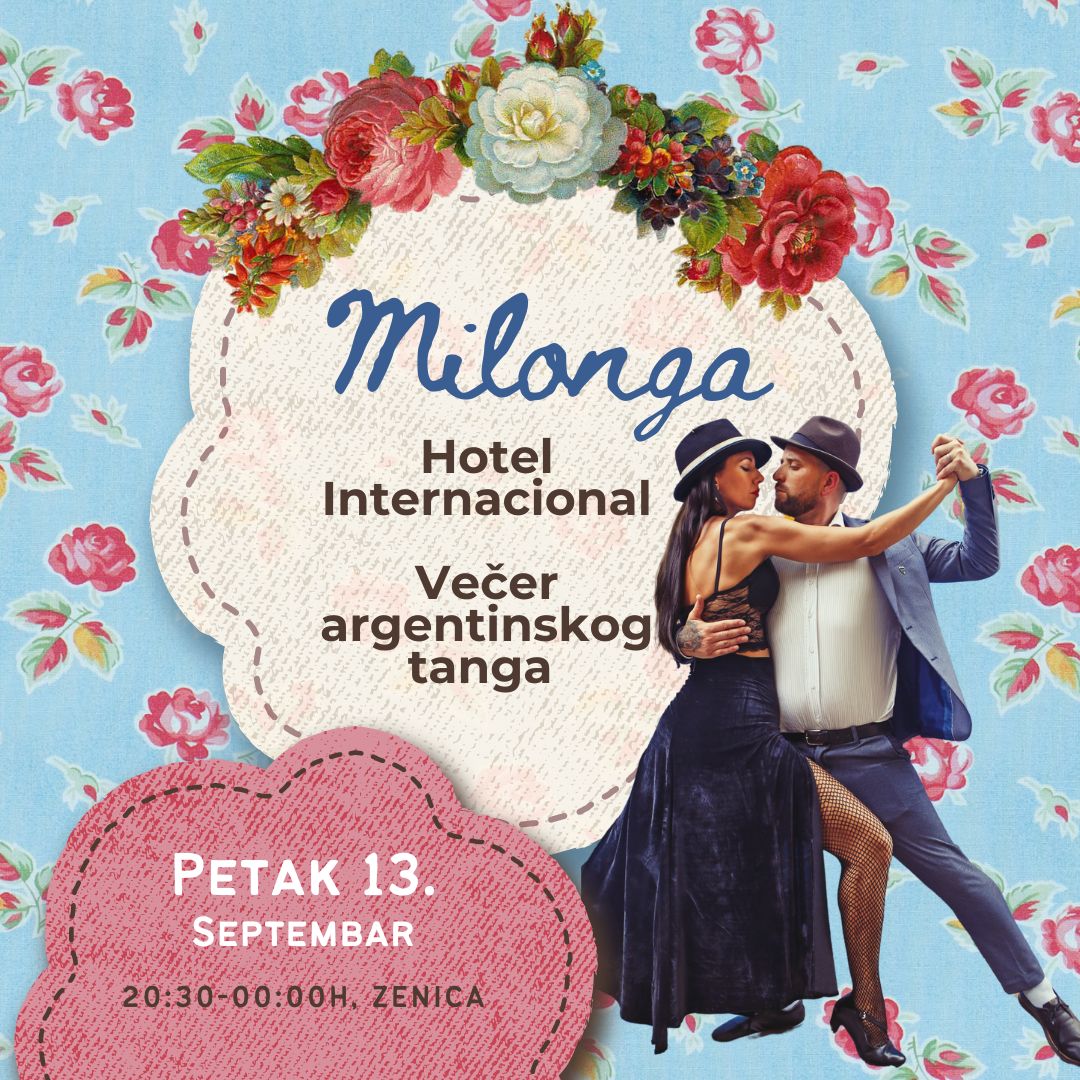 Ljubitelji plesa i zaljubljenici u eleganciju i gracioznost tango pokreta, zabilježite datum – u petak, 13. septembra, s početkom u 20:30, plesni studio Silver Moon iz Zenice organizuje još jednu nezaboravnu milongu u predivnom ambijentu Hotela Internacional u Zenici. Ulaz je besplatan, što je sjajna prilika za sve one koji žele uživati u čarima ovog plesa, bez obzira na nivo iskustva.