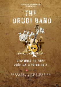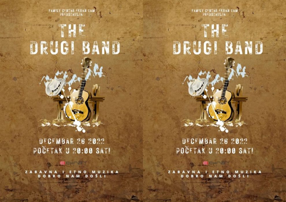 Naredni ponedjeljak nam u goste stiže THE DRUGI BAND, a mi Vas pozivamo na druženje i ples uz ritmove zabavne i etno muzike.