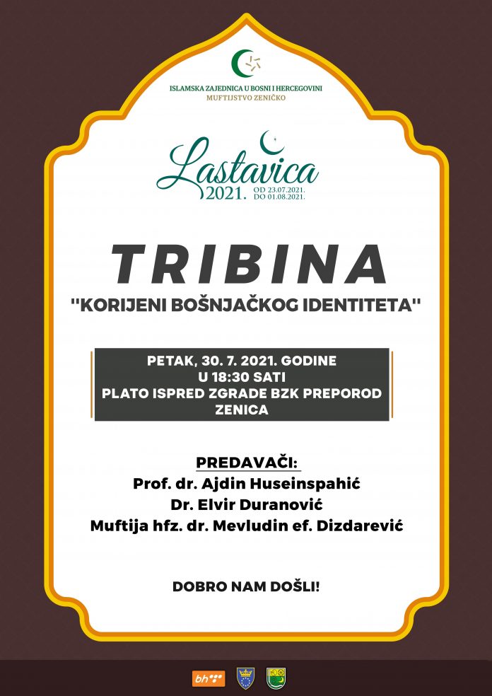 Najava: Tribina “Korijeni bošnjačkog identiteta”- U okviru Vjersko-kulturne manifestacije ”Lastavica 2021.” u petak 30. jula 2021. godine, Muftijstvo zeničko i BZK Preporod organizuju tribinu pod nazivom “Korijeni bošnjačkog identiteta”.