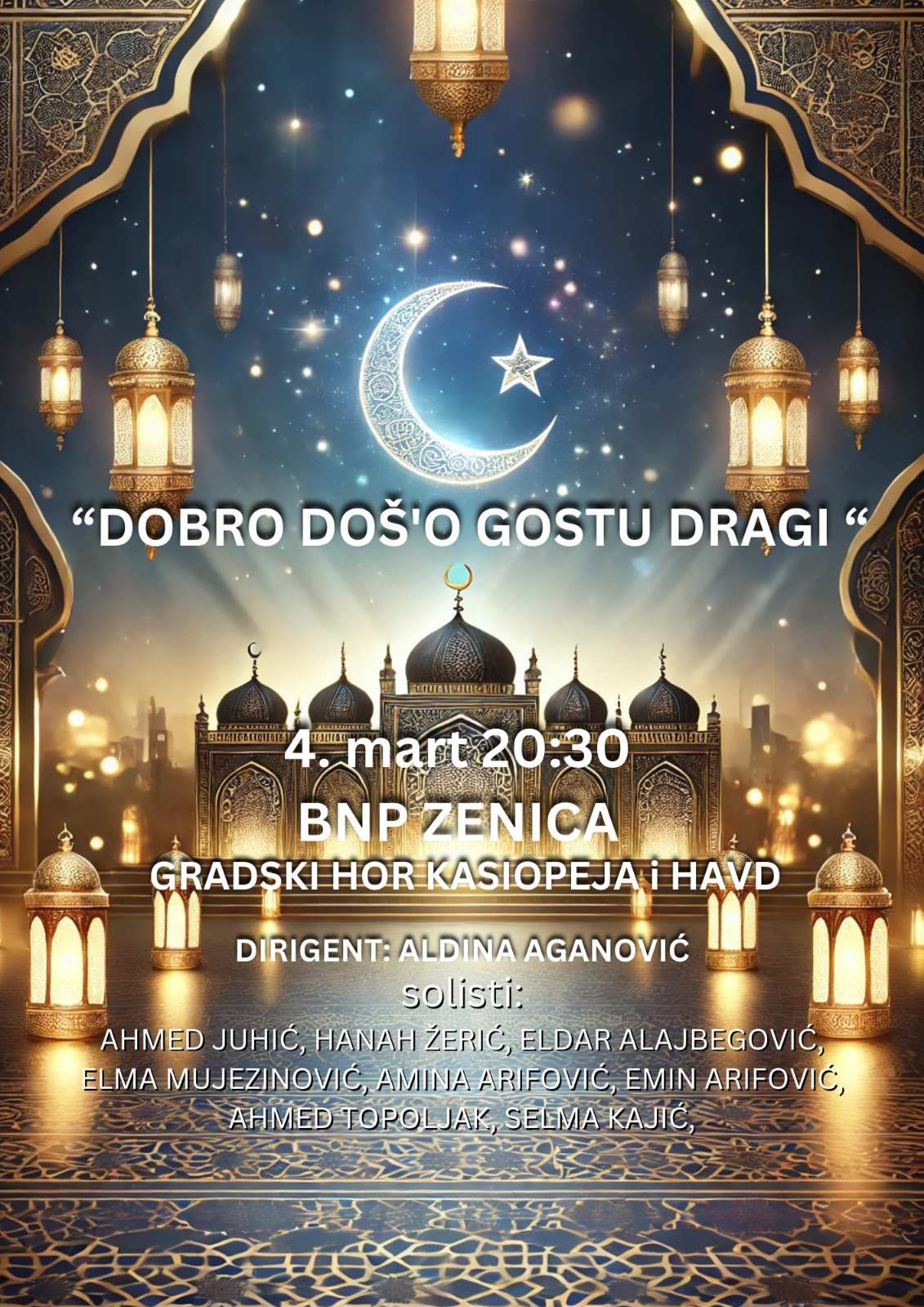 NAJAVA: Veliki Ramazanski koncert u Zenici- Nastavljajući praksu obilježavanja svih vjerskih praznika, Gradski Hor “Kasiopeja” sa svojom dirigenticom prof. Aldinom Aganović organiziraovog veliki Ramazanski koncert.