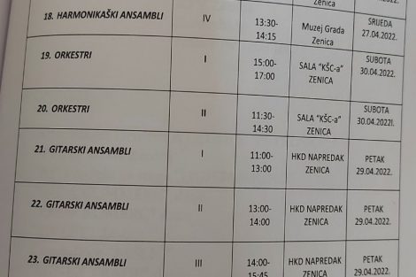 Takmičenje će zvanično otvoriti ministar obrazovanja, nauke, kulture i sporta ZDK Spahija Kozlić, a raspored takmičenja donosimo u prilogu: