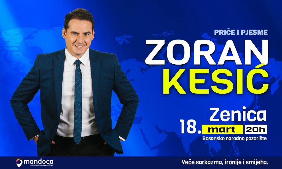 Događaj organizuje Mondoco, kao i čitavu turneju u BiH, a Zenica je domaćin Kesiću 18. marta u Bosanskom narodnom pozorištu Zenica u 20h.