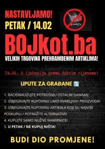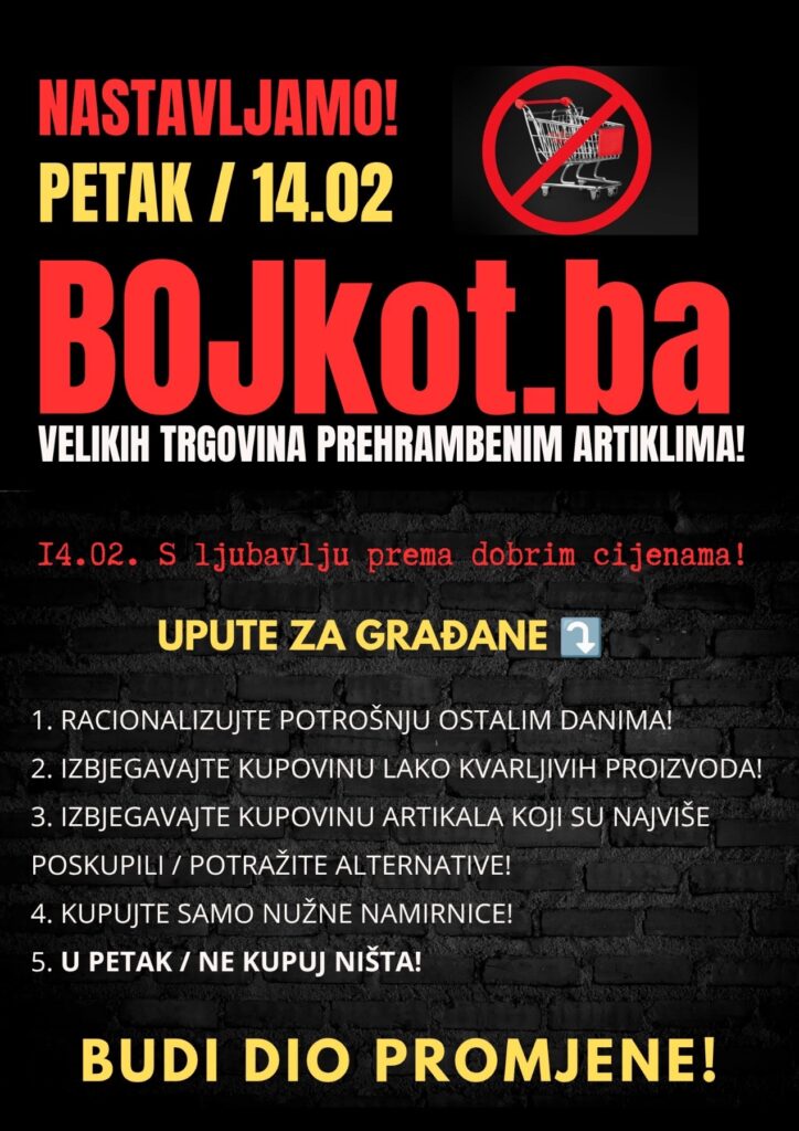 Facebook grupa BOJkot.ba najavila je da će na Dan zaljubljenih, 14. februara biti održan treći bojkot trgovina u Bosni i Hercegovini.