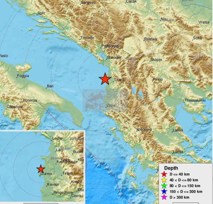 Epicentar je bio na dubini 11 km u mjestu Drač, Albanija oko 3 sata i 54 minute.
