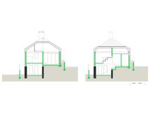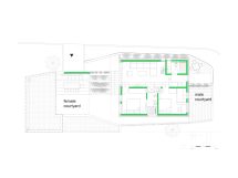 Ostava magaza, koja zauzima polovinu ukupnog prostora, sada postaje ulaz u prizemlju sa kuhinjom i izlazom u žensko dvorište. Unutrašnje stepenice povezuju ga sa gornjim nivoom sa dnevnim boravkom, spavaćom sobom za vlasnike i gostinskom sobom. Komšije stalno prate radove i prijavljuju “neoprostivu” nejednaku visinu prozora.