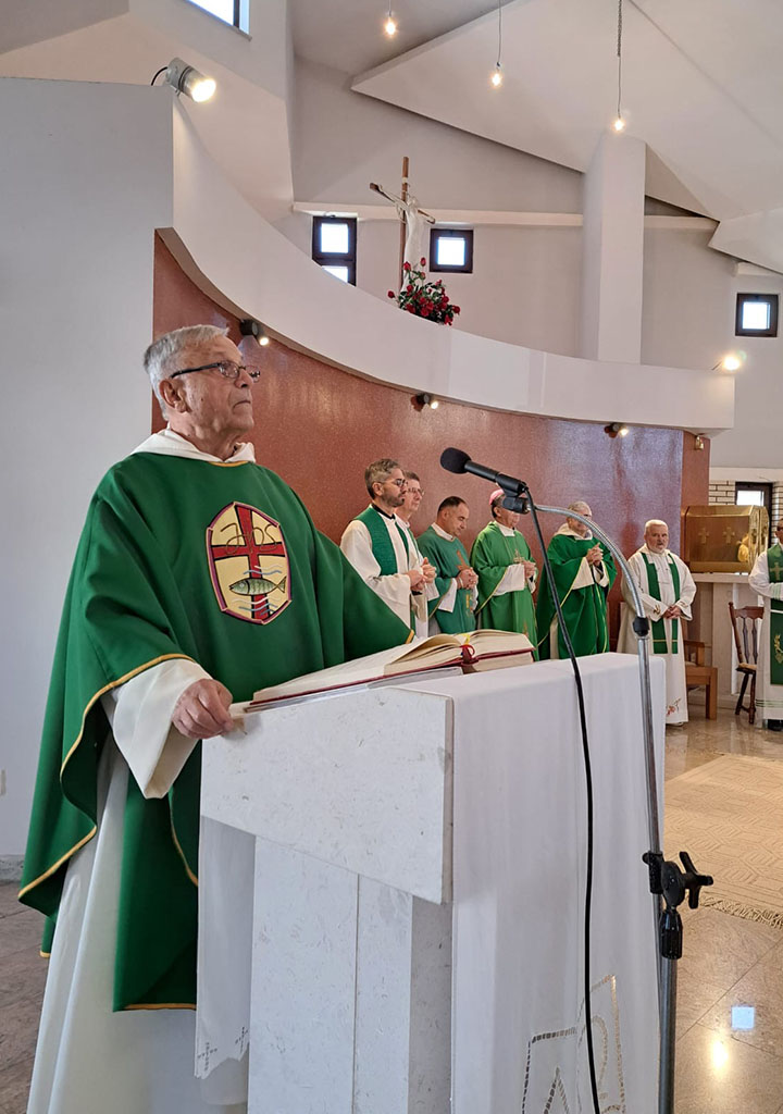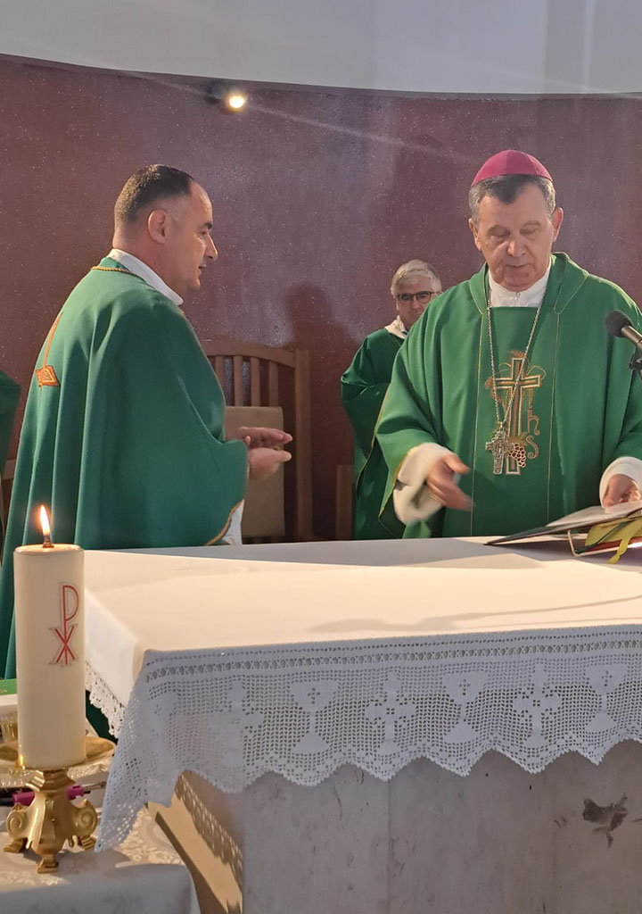 Na početku sv. mise fr. Mirko pozdravio je prisutne u crkvi nakon čega je uslijedio obred uvođenja novog župnog upravitelja vlč. Rosića u službu.