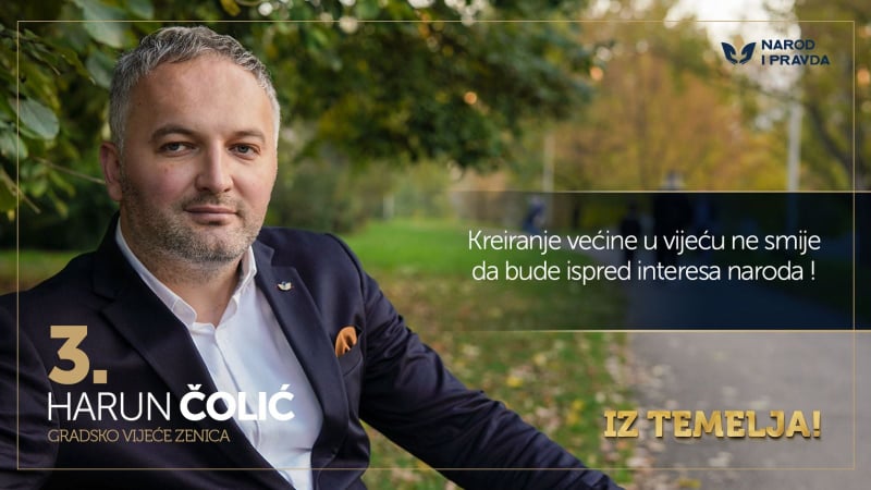 Ovim putem pozivam narod samo da izađe i glasa po slobodnom nahođenju, ne dopustite da se po završetku glasanja na biračkim mjestima odlučuje vaša sudbina umjesto vas. A za sebe ću se usuditi reći da iznevjeriti neću i ne znam a vjerujem i da kolege sa liste će isto demonstrirati i promjeniti političku scenu Grada Zenice.