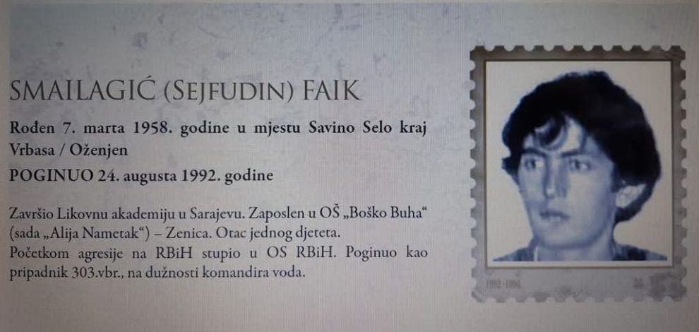 Tokom agresije na BiH (1992-1995), mnogo heroja je dalo svoje živote za domovinu BiH. Jedan od heroja kojeg sam lično poznavao bio je i naš nastavnik likovnog vaspitanja Faik Smailagić koji je 1992. godine nastavnički mantil zamjenio vojničkom uniformom.