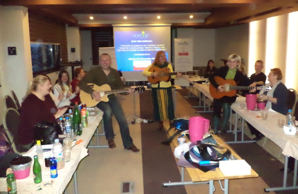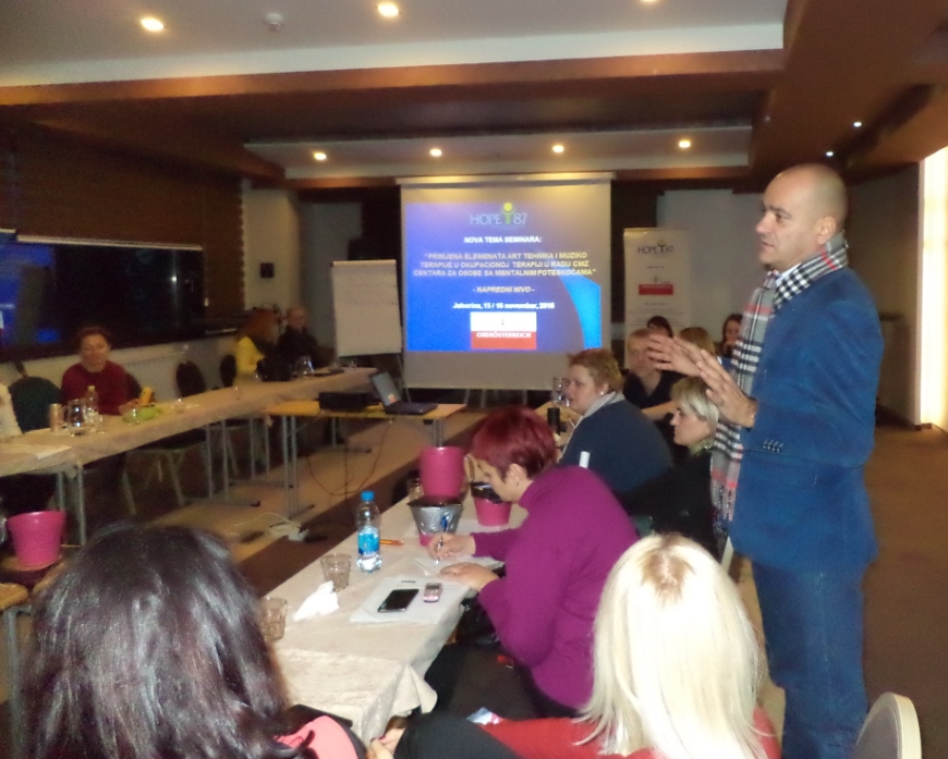 “Edukacijom želimo pokazati da se primjenom elemenata art i muziko terapije mogu baviti i oni koji nisu nuzno muzičari ili umjetnici nego svi oni koji rade na polju zaštite mentalnog zdravlja nakon određene obuke od strane stručnih i iskusnih kolega. Također, s obzirom da je jedan od velikih problema u BIH transgeneracijska trauma rehabilitacioni timovi iz CMZ centara kao i svi ostali profesionalci koji rade na polju zastite mentalnog zdravlja u zajednici moraju uloziti sve napore kako bi doveli do uspješnijeg procesa rane detekcije i intervencije u oblasti mentalnog zdravlja kako kod odraslih, tako posebno i u svrhu prepoznavanja problema ponasanja koji se javljaju kod djece. Komunikacija putem likovnog ili muzičkog izražaja je puno uspješnija nego klasična verbalna komunikacija, jer dijete svoje emocije, osjećaje ,misli i sjećanja lakše ispoljava kroz likovnu i muzičku ekspresiju” izjavio je voditelj muzikoterapije na seminaru Gosp. Danijel Puvača.