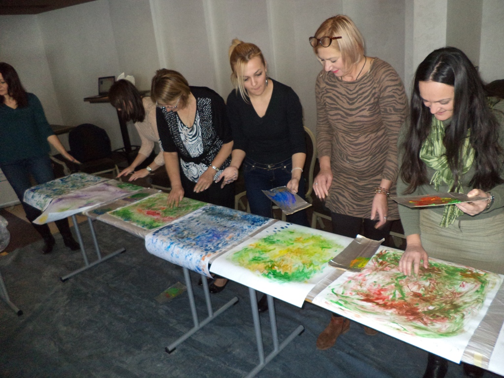 Cetvrti od modula pod nazivom “PRIMJENA ELEMENATA ART TEHNIKA I MUZIKO TERAPIJE U OKUPACIONOJ TERAPIJI U RADU CMZ CENTARA ZA OSOBE SA MENTALNIM POTESKOĆAMA” u trajanju od 2 dana obuhvata teoretska predavanja i praktične dijelove rasporedjene u više specijalističkih radionica. Specijalisticke radionice planirane edukacijom su od izuzetnog znacaja kako bi podstakle aktivno učešće rehabilitacionih timova u radu CMZ centara kao i unaprijedili njihove kompetencije za rad sa osobama sa onesposobljenjem kroz situaciono učenje i sadržaje, koji su aplikativni u njihovoj praksi.