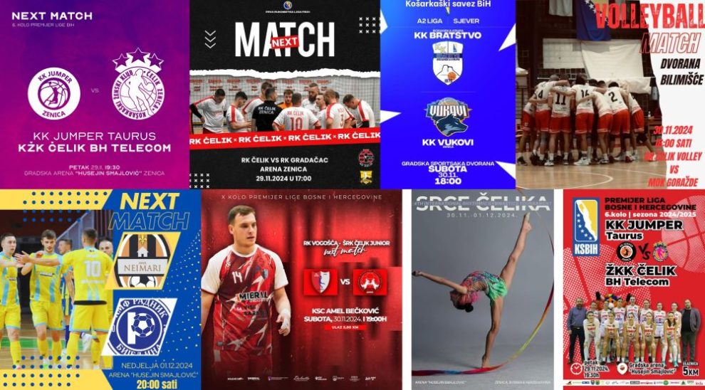 Donosimo Raspored utakmica zeničkih sportskih ekipa i drugih sportskih događaja za period od petka 29.11. do nedjelje 01.12.2024. godine, do kojeg smo uspjeli doći preko objavljenih nominacija, Saveza i klubova.