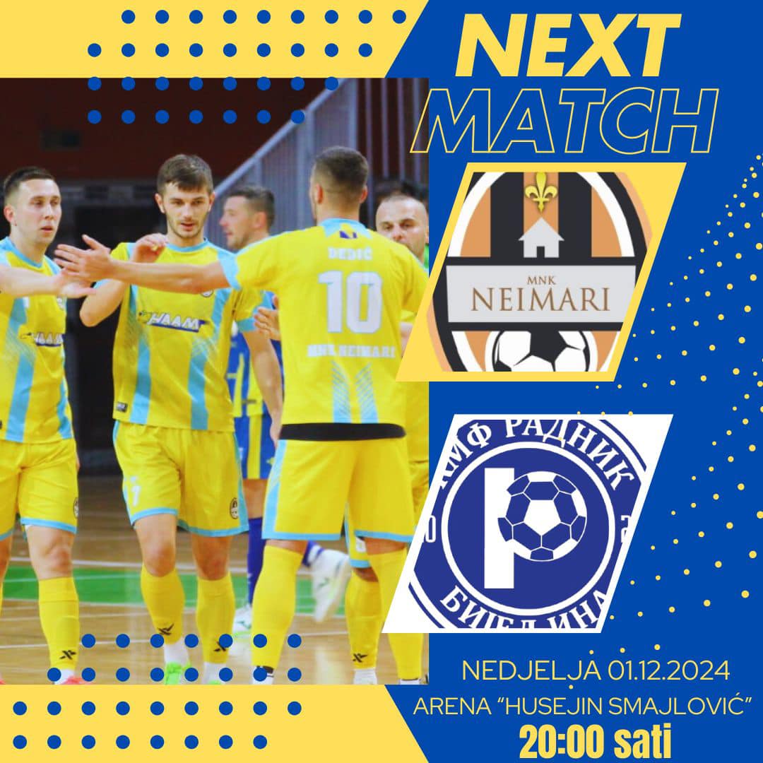 20:00, MNK Neimari – KMF Radnik Bijeljina (Gradska Arena „Husejin Smajlović“)
