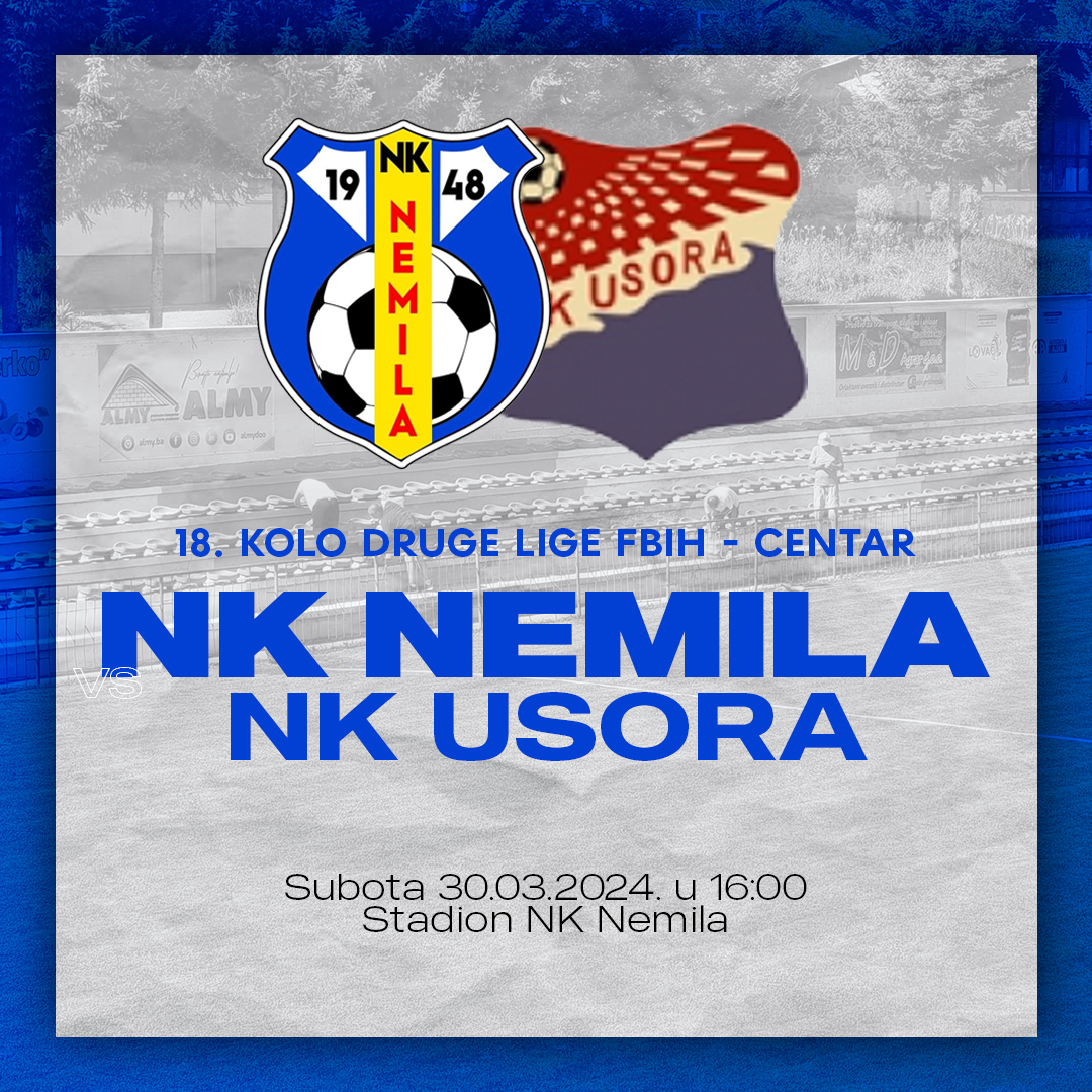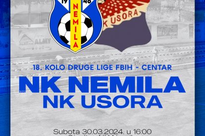 16 sati, Nemila: NK Nemila – NK Usora, 18.kolo Druge lige FBiH, grupa Centar, stadion NK Nemila;