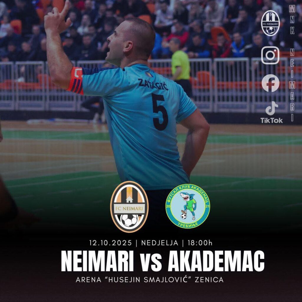 Nakon što je zbog problema administrativne prirode otkazan njihov domaći meč prvog kola, sada će Neimari u okviru trećeg kola odigrati svoj prvi domaći meč protiv novajlije u Premijer futsal ligi BiH ekipe Akademac iz Trebinja.