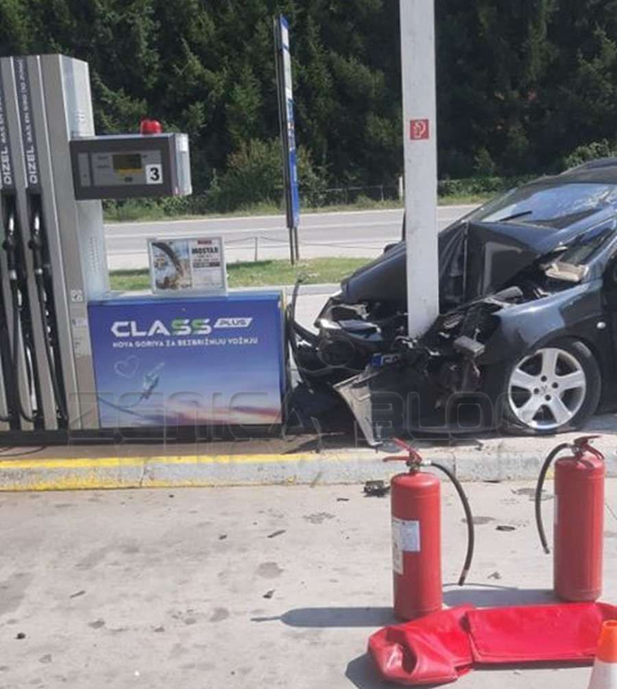 Udario je frontalno u metalni zaštitni stub konstrukcije pumpe, koji je sačuvao je opremu pumpe, ali i vjerovatno i život vozača i vozilo znatno težih posljedica, da ne udare u uređaje za točenje goriva, a potom i u sami objekat benzinske pumpe.