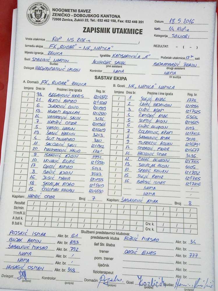 Donosimo rezultate četvrtfinala Kupa ZDK (18.05.2016.u 17,30 sati):