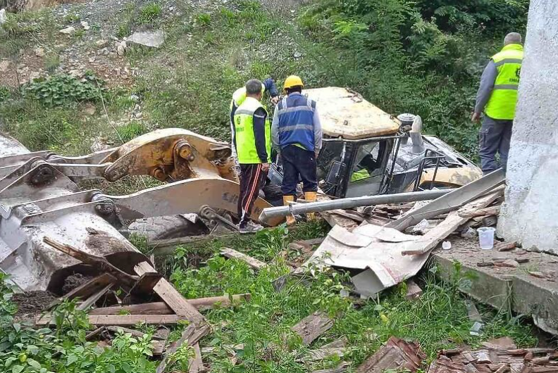 Kako se može vidjeti na fotografijama koje je portalu Klix ustupio jedan čitatelj bager je sletio u provaliju iza kuće jednog mještanina.