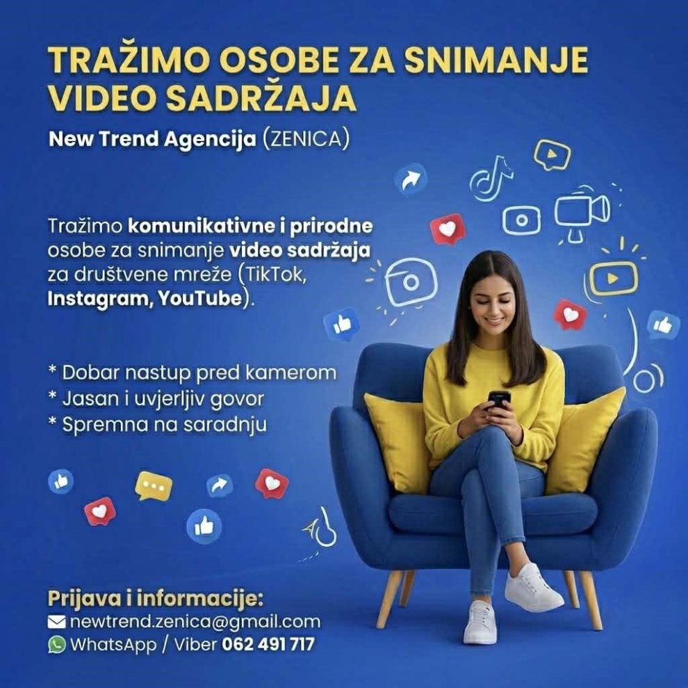 Tražimo osobe za snimanje video sadržaja – New Trend Agencija (Zenica)