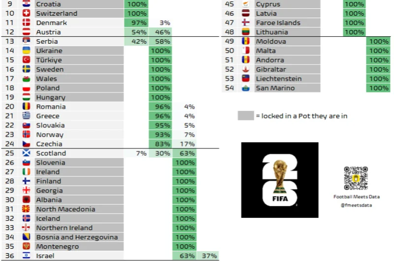 Na prvo Svjetsko prvenstvo u historiji sa 48 reprezentacija iz Evrope će se plasirati 16 selekcija.