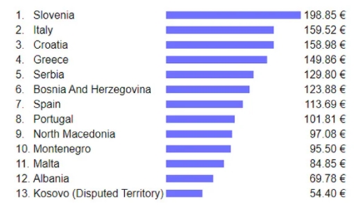Druge zemlje regije plasirane su nešto niže na listi pa se tako Hrvatska nalazi na 20. mjestu te se prema podacima u ovoj državi za režije treba izdvojiti 159 eura.