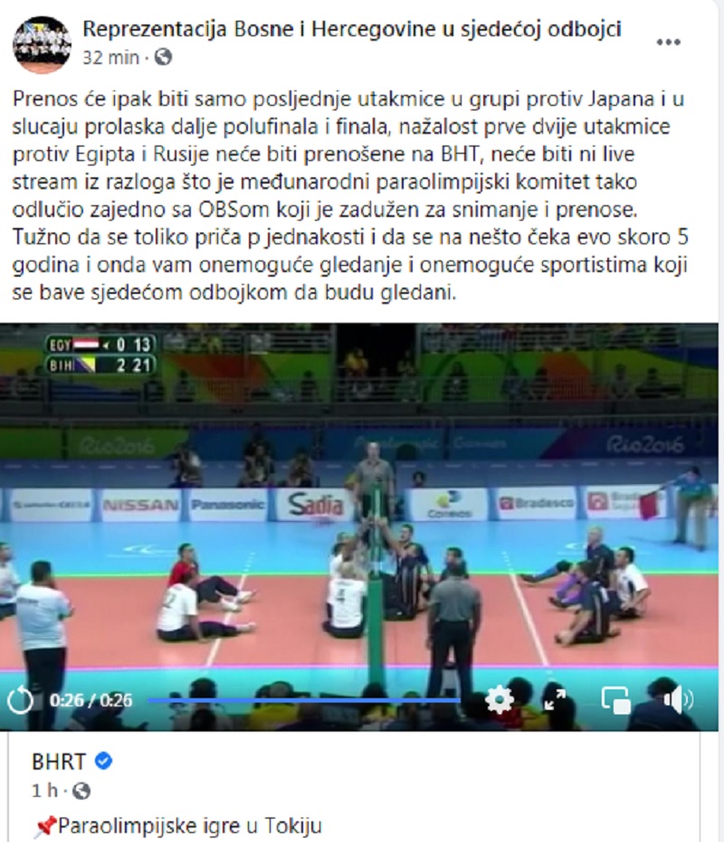 Na Facebook stranici reprezentacije BiH u sjedećoj odbojci obrazloženo je da je to odluka Međunarodnog paraolompijskog komiteta.