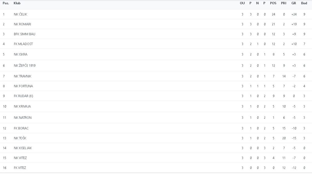 R: Huseinspahić, Avdić (76′), Beganović (66′), Delić, Musabašić (83′), Orlić (66′), Duvnjak, Strika (83′) i Smajić T. (76′).