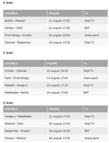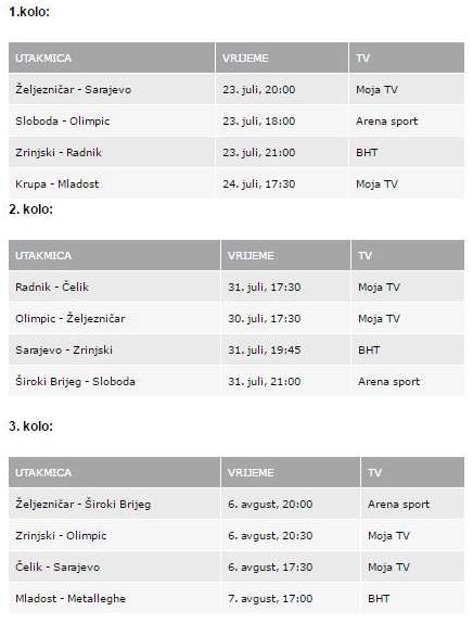 Novina je i da će čak četiri utakmice iz svakog kola biti direktno prenošene na televizijskim ekranima, a prenose će raditi Moja TV, BHT i Arena sport. U pvom kolu na rasporedu je i najveći bosanskohercegovački derbi između Željezničara i Sarajeva koji se igra u subotu 23. jula sa početkom u 20:00, a ovu utakmicu prenosit će Moja TV.