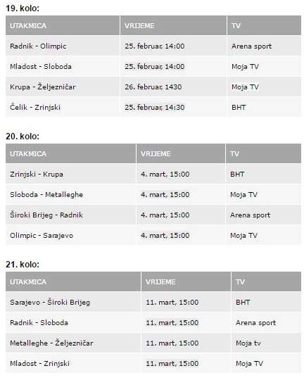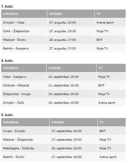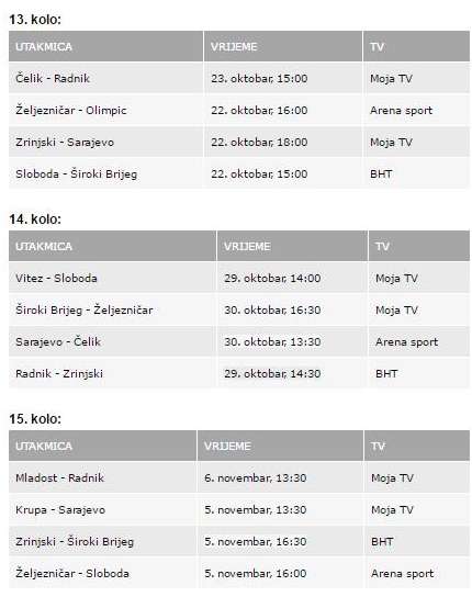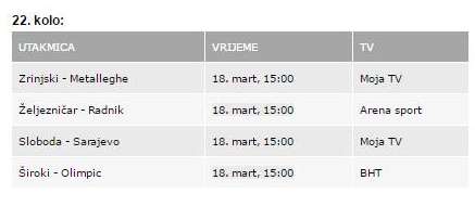 Pored sarajevskog derbija ljubitelji fudbala će u direktnim prenosima moći gledati duele Zrinjskog i Radnika (BHT), Krupe i Mladosti (Moja TV) i Slobode i Olimpica (Arena sport), a SportSport.ba donosi i termine odigravanja svih utakmica iz regularnog dijela sezone koje će se prikazivati u direktnim prenosima.
