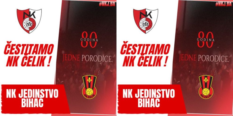 „Čestitamo NK Čelik Zenica povodom 80 godina postojanja, tradicije i doprinosa bh. nogometu. Hvala vam što čuvate vrijednosti istinskog nogometa“, stoji u poruci NK Jedinstvo.