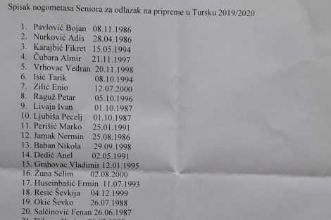 Nogometaši Čelika danas putuju na ljetne pripreme u Tursku Ispred stadiona Bilino polje, danas 25.6.2019.godine, na pripreme u Tursku okupila se ekspedicija prvog tima NK Čelik sa 30 putnika na spisku, koji smo dobili od generalnog sekretara NK Čelik, Ismara Huskića.