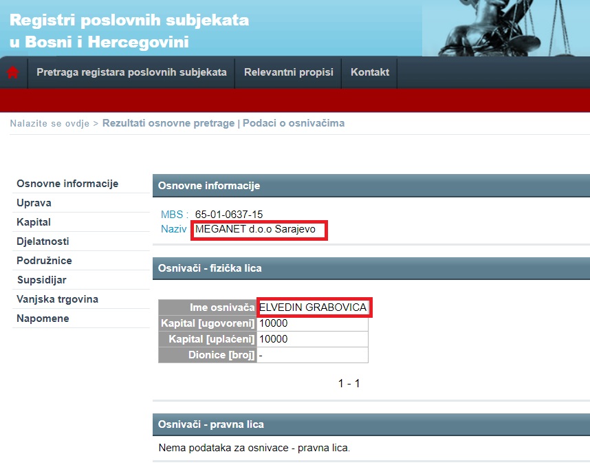 Kada je riječ o firmi Meganet, prema zvaničnim finansijskim podacima koje vodi bonitetna kuća Dun & Broadstreet, ukupni prihodi ove firme u proteklim godinama rapidno su rasli. U 2020. godini iznosili su 1,3 miliona KM, u 2021. godini 1,7 miliona, da bi se u 2022. godini popeli na čak 5,7 miliona KM! Srazmjerno tome je rastao kapital, kao i neto dobit.