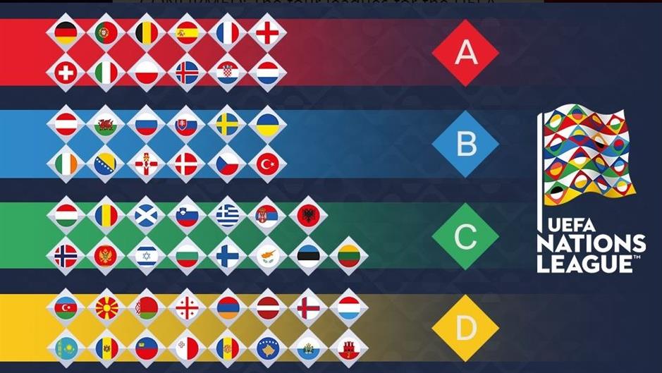 Ipak, novina je Liga nacija. To je novo UEFA-ino takmičenje koje će biti podijeljeno u četiri lige, a svaka liga bit će podijeljena na četiri jakosne skupine koje će imati po tri ili četiri reprezentacije.
