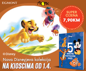Nova knjiga iz kolekcije Disney Petominutnih priča je na kioscima- U četvrtak izlazi osma knjiga – Djeci, a vjerovatno i većini roditelja avanturističke priče mogu biti sjajne i zabavne. Pored toga, pomoći će nam da naučimo i neke važne lekcije. Trudimo se da naučimo djecu mnogim vještinama uz koje će moći da se što bolje snađu, budu bezbjedni i da se uz sve to i zabave. U ovoj knjizi možda ćete pronaći neka rješenja ili teme za situacije o kojima želite da razgovarate. Novih pet priča odvest će vas u razne avanture u jedan zamak, na dno okeana, prisustvovat ćete šumskoj poplavi, splavarit ćete riječnim brzacima i osjetiti toplinu afričke savane.