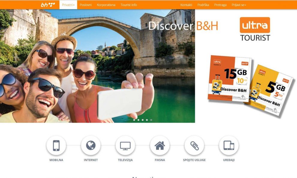 Nova web stranica BH Telecoma – Potpuno novi dizajn i funkcionalnosti uz mnoštvo novog informativnog sadržaja za vas – Želimo udovoljiti vama, želimo da imate bolji, pregledniji i nadasve jednostavan pristup informacijama i aktuelnim ponudama BH Telecoma, kao i ostalim podacima vezanim za poslovanje naše kompanije.