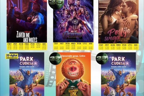 Ljubavni film „Poslijega svega“, sa prikazivanjem nastavlja od 17:00 i 19:00 sati, dok će najmlađi uživati u fantastičnom Parku čudesa u subotu i nedjelju od 11:00; 12:00; 13:00 i 14:00h. Animirani film „Gospodin link u potrazi za skrivenim blagom“ će se emitovati u subotu i nedjelju od 10:30 i 12:30h. Sve informacije, kao i rezervacije ulaznica mogu se izvršiti na broj 032 407 518, radnim danima od 16:30h, a vikendom tokom cijeloga dana.