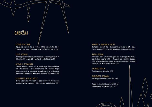 Knjiga donosi pregršt iznenađujućih činjenica i priča sa uzbudljivog sevdalijskog puta. Mnoge od njih po prvi put će biti objavljene na ovim stranicama. Ovo je knjiga izvođača kojeg interesira njegov zanat i njegova historija, ali koji gleda u budućnost i traži nove puteve za svoju umjetnost.