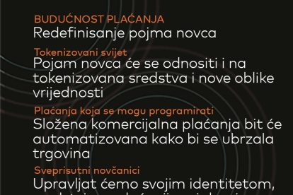 • Tokenizovani svijet – Tokenizacija omogućava pristup širom rasponu sredstava, istovremeno promovišući povjerenje i sigurnost u samoj razmjeni. Kako se krećemo ka tokenizovanom svijetu, potrošači i kompanije će moći da koriste, kombinuju i razmjenjuju nove oblike vrijednosti, a takav pristup kreira i nove poslovne modele.