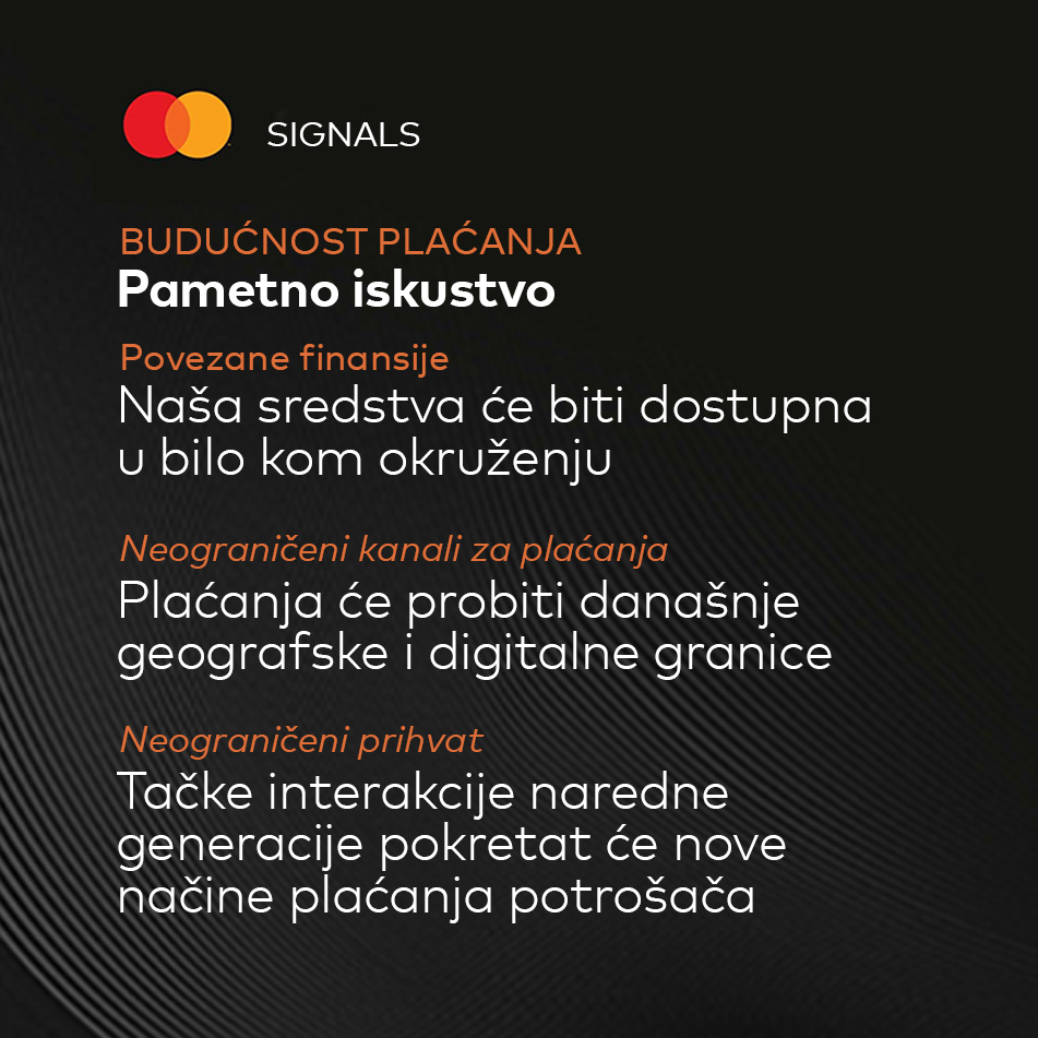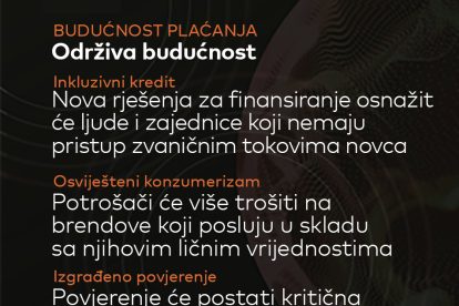 Kompanija Mastercard objavila je novi izvještaj „Budućnost plaćanja“ koji pokazuje da ćemo do kraja ove decenije vidjeti značajne inovacije koje će preoblikovati trgovinu i ekonomiju uvesti u narednu fazu razvoja. Transformativne promjene koje predstoje, uključuju redefinisanje pojma novca, nove načine za razmjenu vrijednosti, pametna iskustva koja obuhvataju kako fizičko, tako i digitalno okruženje, kao i više standarde u pogledu inkluzije i održivosti, što će mijenjati način na koji kreiramo, izrađujemo i isporučujemo proizvode.